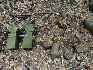 苔に覆われた煉瓦作りの建物が土に埋まっている感じで、